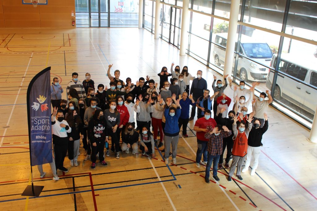 Aujourd’hui avait lieu la journée basket adultes. Une vingtaine de sportifs étaient présent ainsi que 25 jeunes du lycée dans la filière sanitaire et social pour découvrir le sport adapté.